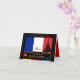 Fällbart kort: Fira julhelgen & Nyår med dina vänner och familj med anpassat "Bästa önskningar"-kort med fransk flagga och Eiffeltornet, Frankrike med lätt personaliserad text och datum 202x. Kan anpassas för födelsedagar eller andra önskningar.