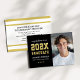 Meddela din klass 2023 gymnasieexaminerad med stil med denna examensmeddelande och partyanledning. Dubbelsidigt kort med en enkel och manlig design med idrottströja inspirerad bokstavsstil, perfekt för din all-star student och variativ idrottsutövare. Svarta, guld och vita färger. Utrymme för att inkludera ett seniorfoto på framsidan med partyanledningsformulering på baksidan. Alla färger kan anpassas.
