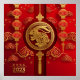 2023 är det kinesiska nyåret för kaninen! Utformningen har kanin guld på rött med lyktor och moln.