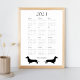 Den här eleganten, som ändå är en enkel Dachshund-kalender för 2024, omfattar fullt 12 månader. Utformningen omfattar en modern uppsättning typsnitt, tillsammans med två svarta hund-silhuetter mot en vit bakgrund. Anpassa den här mallen med ditt eget namn eller någon speciell, Underbar gåva till någon som tycker om dachshund eller Wiener hundar. Den här mallen finns också i en storlek på 8,5 x 11 tum, vilket gör det enkelt att hämta och skriva ut på hemmaplan.