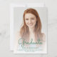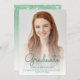 Trendigets moderna studenten-meddelande med ett foto av lodrät anpassningsbar. Ord "Student" visas i handskriftsskript för grönt överlägg, med student namn, skola och år studenten nedanför i sans serif-teckensnitt. Byt enkelt ut exempelbilden mot ditt eget student-foto. Med en vit övertoning i skärm kan du kontrollera att textpekarna visas. Lägg till information om dina student-resultat och framtida planer på motsatt sida, som har en grönt som droppar faux gräns i i ett ombre-läge.