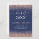 Klass av 2024 års inbjudan till Studentfesten Ro Guld och marinblå Modern och Elegant Sparkly Glitter Girly. Inbjudan är perfekt för att Party, som är högskola eller högskoleexamen, tittar fira i Rosa ros Guld. Om du behöver ytterligare matchande artiklar kontaktar du designern.