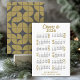 En grått-design för guld och kol - Ett modernt sökande efter ett helgdag för företag. En kalender ingår i det nya året med ett hälsning som kan användas för vilket företag som helst. Lägg till din logotyp och enkla text till denna unika utformning med ett modernt halvsekel av måne mönster på baksidan. Om du vill flytta något runt klickar du på knappen Anpassa för att göra ändringar.