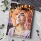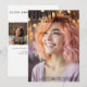 Modern minimalistisk Studenten Magazine Cover Stil annonsfoto med ett huvudfoto på framsidan och två mindre foton på baksidan. På baksidan finns det utrymme för ytterligare detaljer, t.ex. gradresultat, framtida planer eller studenten-ceremoni/party-detaljer.