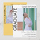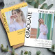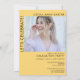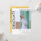 Modern Minimalistisk Två Foto Examen Meddelande & Examen Fest Inbjudan med svart text på vit bakgrund. Baksidan är en ringblomma gul med svart text