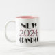 Välj önskad stil och färg mugg med rosa och svart text som lyder Nytt mormor och daterad 2024
