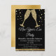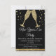 2024 Nyårsfirande Guld Diamant Champagneglas Festinbjudan. Den svart-guldfärgade nyårsfesten inbjudan är perfekt för en modern nyårsfest.