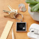 2024 och 2017 Dubbla Dated Solar Eclipse Fyrkantig Silverfärgad Nyckelring