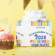 2024 års söta pappra förskoleemballering i studenten har en coola- och graderhatt över färgstarka skrivningar och en rad kritor i regnbåge. Roligt före-K student-presenter i roligt färg för grundskolans sista dag. Grattisar till vår PreK-grad!
