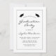 Den här klassiska, moderna inbjudan till studentfest innehåller svart text i ett tunt svart rektangulärt gräns på vit bakgrund. Ord "Studenten" och namn i student står i avslappnad med modernt handskriftsteckensnitt under ett par svarta pantskärmar. Anpassa inbjudan med information om party och ersätt exempelbilden på baksidan med ett foto av din grad.