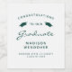 Fira din student-milstolpe i stil med dessa anpassningsbar studenten-flaska-märken, som innehåller ord "Grattisar till vår vin" i Student text på vit bakgrund, dekorerad med ett par mörk grönt-dammluckor. Ord "Student" visas i ett snyggt handskriftsskript stil. Anpassa det till namn, skolan och studenten.