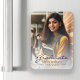 Modern studenten-annonseringsmagnet med ett anpassningsbar-lodrät-foto med textövertäckning. Ord "Student" visas i marinblått skript, med student namn, skola och år studenten nedanför i sans serif-typsnitt. Byt enkelt ut exempelbilden mot ditt eget student-foto. Med en vit övertoning i skärm kan du kontrollera att textpekarna visas. Perfekt för högskoleexamen eller högskoleexamen.