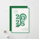 Gratulera till nyårsjubileet med det här djärva, moderna och elegant-Julhälsningar vykortet som innehåller en grönt orm på en vanlig contemporary, vit bakgrund som sprinklats med söt konetti.