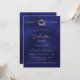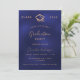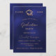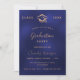 En modern inbjudan till studentfest av elegant. En marin blå bakgrund, gyllene text. Den blå färg är ojämn. Anpassa och lägg till namn, år och detaljer.