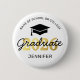 Knappen anpassningsbar studenten med en sockel i student, 2025 i faux guld, namn i skolan, studenter namn och ord student i ett typsnitt.