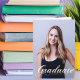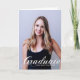 Examen skrivs i elegant vit blomspråkskrift över ditt seniorporträttfoto gör ett vackert, minimalistiskt examensannonskort. Anpassa med ditt namn och gymnasie- eller universitetsklass 2025 under den kursiva typografin och lägg till dina personliga uppgifter på insidan av dessa klassiska textöverlagrade examenskort. Lägg till ett andra fotografi på insidan