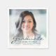Modern studentfest-blöjor med anpassningsbar-foto med textövertäckning. Byt enkelt ut exempelbilden mot ett foto av student. Ord "Student" visas i mörk grönt handskriftsskript, med namn, skola och år studenten nedan i sans serif-teckensnitt. Ett vitt övertäckt övertoning hjälper till att få grönten att skjuta. Perfekt för högskoleexamen eller högskoleexamen.