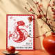Den här eleganten förenar det kinesiska nyårsmätningskortet tradition med modern enkelhet. En röd ramar mellan frimärke och stil är en gyllene papper ormkonstruktion som ställs mot en mjuk rosa-röd bakgrund med traditionella, auspira moln mönster. Budskapet "Lycklig kinesiskt nyår" förekommer både i kinesisk kalligrafi och i engelsk typografi, där man delar varmt önskemål med vänner och familj för ormens år. Anpassa meddelandet och namn på baksidan. Om du föredrar handskrift lämnar du bara mallarna tomma. ♥ Om du vill ändra teckensnittet stil, färg eller textplacering klickar du bara på knappen "Anpassa ytterligare". ♥ Om du behöver hjälp eller har någon speciell begäran om den här designen eller någon annan i mina butiker, ska du alltid ha möjlighet att kontakta mig via "CONTACT SELLER" och jag är lycklig för att hjälpa dig! ♥ ♥ ♥ Visa samlingen på den här sidan om du vill söka efter matchande objekt.