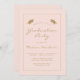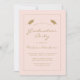 Den här klassiska, moderna inbjudan till studentfest innehåller guld-text i ett tunt guld-rektangulärt gräns på rosa. Ord "Studenten" och namn i student står i avslappnad med ett modernt handskriftsteckensnitt under ett par guld granatkartonger. Anpassa inbjudan med information om party. Kortets baksida är solid .