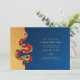Fira glädjen av det nya året av ormen med denna djärva, moderna och eleganta högtidliga inbjudan med en röd, guld och grön blomsterorm på en slank samtida blå och guld bakgrund.