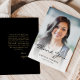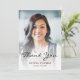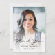 Ett enkelt, modernt, studenten-tack-kort som innehåller ett foto av lodrät anpassningsbar. Ord "Tack" visas i handskriftsskript för svart avslappnad, med student namn och studenten nedan i sans serif-teckensnitt. Byt enkelt ut exempelbilden mot ditt eget student-foto. Med en vit övertoning i skärm kan du kontrollera att textpekarna visas. Anpassa guld-färgadens text på motsatt sida med ditt tack.
