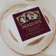 Dessa studentfest-blöjor har en kollage av tre anpassningsbars fyrkantiga foton ovanför ord "student" i sportig guld-färgad-typografi på en burgundröd bakgrund. Lägg till student namn, skolår och klassår nedan i sans serif-teckensnitt.