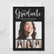Studenten-annonskort i snyggt och partiinbjudan innehåller "Student" i ett trendigets kalligrafiskript med en modern fotokollage av fyra (4) foton av graden. Tvåsidig kortdesign innehåller ordalydelsen "Låt oss Celebrate" studentfest och detaljer på baksidan. Klassisk svartvit design med accenter för färgaden silver.