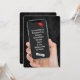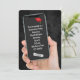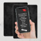 En hand som håller en smartphone med 2025 studenten-diplom på en svart läderbakgrund under en studentfest. All text kan redigeras. Diploma- och gradsockeln kan strykas.