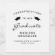 Fira din student-milstolpe i stil med dessa anpassningsbar studenten-flaska-etiketter, som innehåller ord "Grattisar till vår vin" i svart text på vit bakgrund, dekorerad med ett par svarta granatkartor. Ord "Student" visas i ett snyggt handskriftsskript stil. Anpassa det till namn, skolan och studenten.
