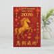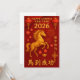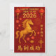 Fira det kinesiska nyåret år Häst med stil med detta eleganta gratulationskort för det kinesiska nyåret 2026. Med en djärv galopperande gyllene häst mot en rik röd bakgrund, kompletterad med traditionella lyktor, fyrverkerier och körsbärsblommor, fångar denna design andan av eldhästen — symboliserande energi, framgång och tur.