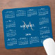 Chic 2026 calendar mouse pad features an elegant custom name and monogram above the year in the middle surrounded by a white calendar on a blue background. Add your name and initial in the sidebar. Makes a great gift!