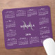 Chic 2026 calendar mouse pad features an elegant custom name and monogram above the year in the middle surrounded by a white calendar on a purple background. Add your name and initial in the sidebar. Makes a great gift!