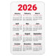This design features the 2026 calendar with a white background, red year, black months, red days of the week, and gray dates.