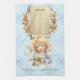 Blue plaid 2026 calendar towel, "Each Day is a Gift From God". Sweet angel, gold wreath & parchment scroll with calendar.