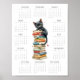 2026 Ett sidor kalender med svart katt och böcker Poster