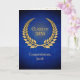 Custom name on the front of a 2026 graduation card with a gold laurel wreath symbol on a blue background.