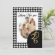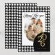 Ett klassiskt hundtandsmönster inramar ett vertikalt foto på det här eleganta julkortet med en tryckt "Godt Nytt År" och plats för eget namn. Baksidan har ett matchande svartvitt hundtandsmönster.