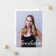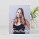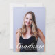 Graduate är skrivet i elegant vit flourish-stil över ditt seniorporträttfoto och gör ett vackert, minimalistiskt examensbevis kort. Anpassa med ditt namn och gymnasium eller universitet klass 2026 under den kursiva typografin och lägg till dina personliga detaljer på baksidan av dessa klassiska textöverlägg graduate-kort.