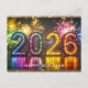 2026 Happy New Year Modern Fireworks Glitter Vykort