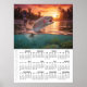 Stor väggkalender 2026 med tema flugfiske med öring som hoppar ur vattnet och fångar flugor. Vacker solnedgångsutsikt vid floden. Kalendern kan skalas till olika storlekar. För bästa prestanda, behåll bildförhållandet. Andra fiskkalendrar inklusive karp, öring, gädda, lax, abborre, mal tillgängliga.