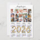2026 Kalenderfamilj 15 Photo Collage Guld Glitter Julkort