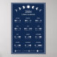 2026 Månfas Lunar Cykler Mörkblå Färg Minimalistisk Konstkalender Poster