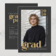 Mark a major milestone with this modern, editorial-style graduation announcement designed with a bold aesthetic. Design features a clean charcoal background with warm gold-toned typography and a refined layout. An easy-to-use template allows you upload your photo and personalize the class year, graduate's name, and school. On the back is a coordinating grad party invitation layout that transitions seamlessly from announcement to celebration. Personalize with the graduate's name and party details. © Kimbellished, LLC