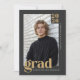 Markera en stor milstolpe med detta moderna, redaktionella stilens examensannonsering som är designad med en djärv, förfinad estetik. Med en ren kolbakgrund och varm, guldtonad typografi framhäver framsidan ett starkt porträtt för en självsäker, återhållen look, medan baksidan innehåller en tre-fotografikollage och utrymme för ett personligt meddelande. Denna helt anpassningsbara mall gör det enkelt att redigera examensår, examenens namn, skola och anpassat meddelande, så att du kan skapa en annons som känns genomtänkt och personlig utan att vara överdriven. Den minimalistiska layouten, strukturerade typografin och starka visuella hierarkin ger ett utmärkande alternativ till traditionella examenskort och är särskilt väl lämpade för manliga studenter. © Kimbellished, LLC