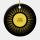 Yellow sun with black circle Total Solar Eclipse personalized with your text - name, date, and place keepsake souvenir tree ornament.