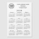 Skicka dina kunder en personlig med 2026-kalendermagnetkort med logotypen, företaget namn och kontaktinformation för företag i svart text på vit bakgrund. Lägg till logotyp, företagstext och anpassningsbar (webbplats, mobilt nummer, adress, slogan eller annat meddelande) i sidlisten. Din logotyp kan vara vilken form som helst eller färg. Innehåller ett kuvert som är enkelt att skicka (eller få det utan något i sidlisten). Om du vill ändra färg i bakgrunden trycker du på "Redigera med Design Verktyg" och markerar en bakgrund färg i sidlisten. Klicka på "Klart" och sedan på "Lägg till i kundvagn" för att köpa det anpassade objektet. Copyright © Claire E. Skinner. Alla höger reserverade.