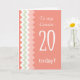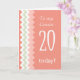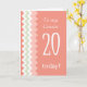 Ett stilrent 20-årsdagskort för en kusin, med ett trendigt sicksackmönster i korall, mintgrönt och vitt av Judy Adamson. Du kan redigera den interna texten om du önskar.