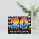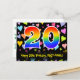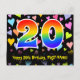 Framsidan av denna roliga, spännande och kärleksfulla födelsedagstema postkortsdesign har en stor siffra "20" med ett regnbågsspektrum-gradering inspirerat mönster. Den har också meddelandet "Grattis på 20-årsdagen," och ett anpassat mottagarnamn. Framsidan har dessutom ett färgrikt och livfullt mönster av kärleksfulla hjärtan. Baksidan har ett anpassat födelsedagsmeddelande, eller kan eventuellt lämnas tom om ett meddelande ska skrivas för hand istället. Ett personligt födelsedagskort som detta kan vara ett roligt sätt att erkänna någon på deras 20-årsdag. Postkort som detta kan också användas för att bjuda in gäster till en födelsedagsfest eller firande som hålls för någon som fyller 20