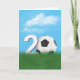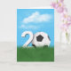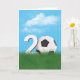 En svart och vit fotboll i grönt gräs, blå himmel och moln för 20 år sedan. Ålder kan ändras och texten i kan redigeras.