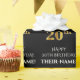 Denna lyxiga och elegant födelsedagstäckande pappra utformning visar meddelandet "LYCKLIG 20:e BIRTHDAY,", ett anpassade namn, och födelsedagsnumret "20:e" med ett faux/imitation guld inspirerat utseende mönster. Bakgrunden är svart på färgad. Papper som denna kan användas när presenter/presenter som ges i firande på någons 20-årsdag slås in. [~Z0000454]